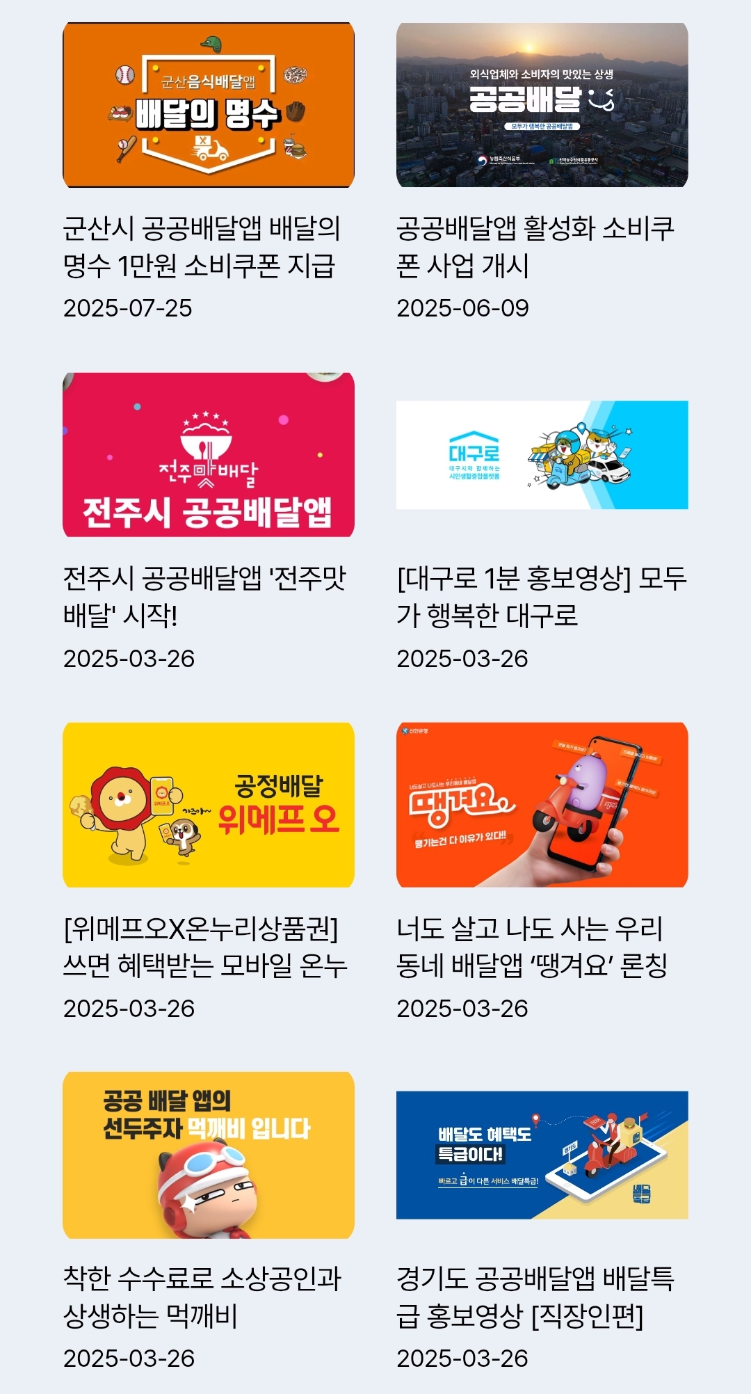 - 완화된 쿠폰 지급 기준은 모든 참여 앱에 공통 적용되지만, 시스템 정비 일정에 따라 각 앱별 적용 시점에는 다소 차이가 있을 수 있으니, 자세한 사항은 각 공공배달앱에서 확인해 주세요.