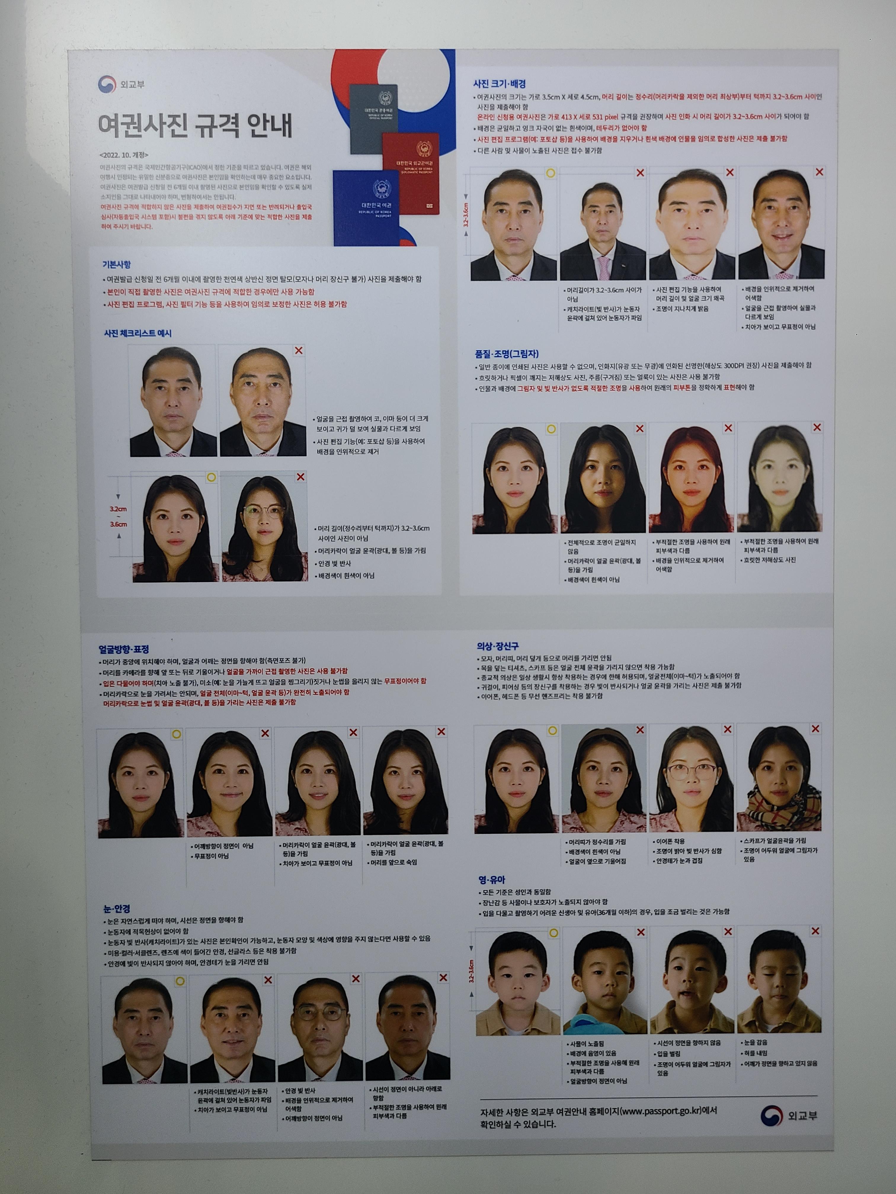 - 정면 응시: 의자에 앉아 정면 화면을 정확하게 응시해주세요. 여권사진 규정 등은 기계 안에 친절하게 안내되어 있으니, 촬영 전 꼭 읽어보시고 유의사항을 지켜주세요!