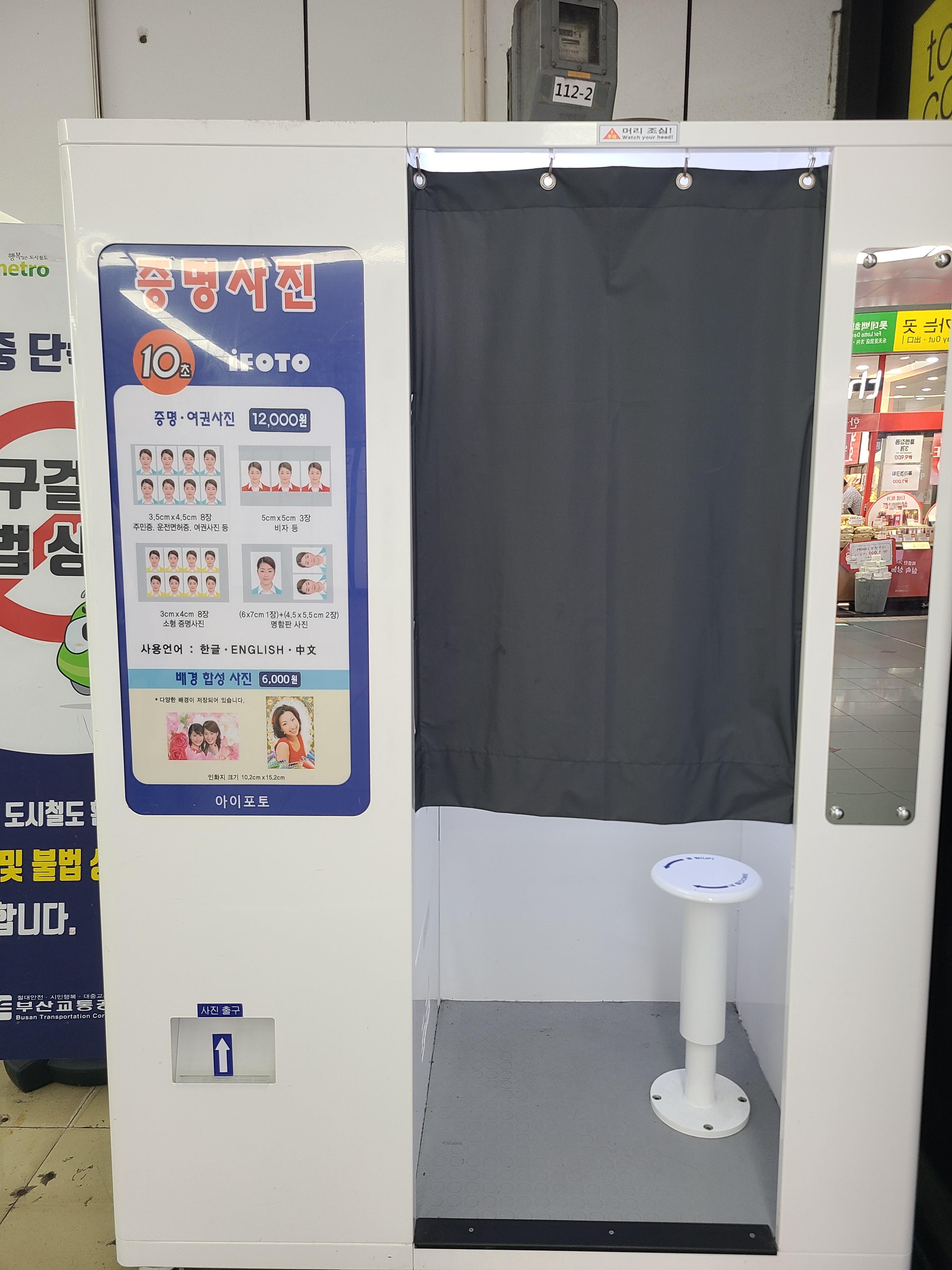 갑자기 증명사진이나 여권사진이 필요해서 발만 동동 구르셨던 경험, 다들 있으시죠? 사진관은 문 닫았고, 시간은 없고… 이런 비상 상황에서 서면역 지하철 안에 있는 즉석증명사진 기계 '아이포토'가 여러분의 고민을 시원하게 해결해 줄 수 있습니다!