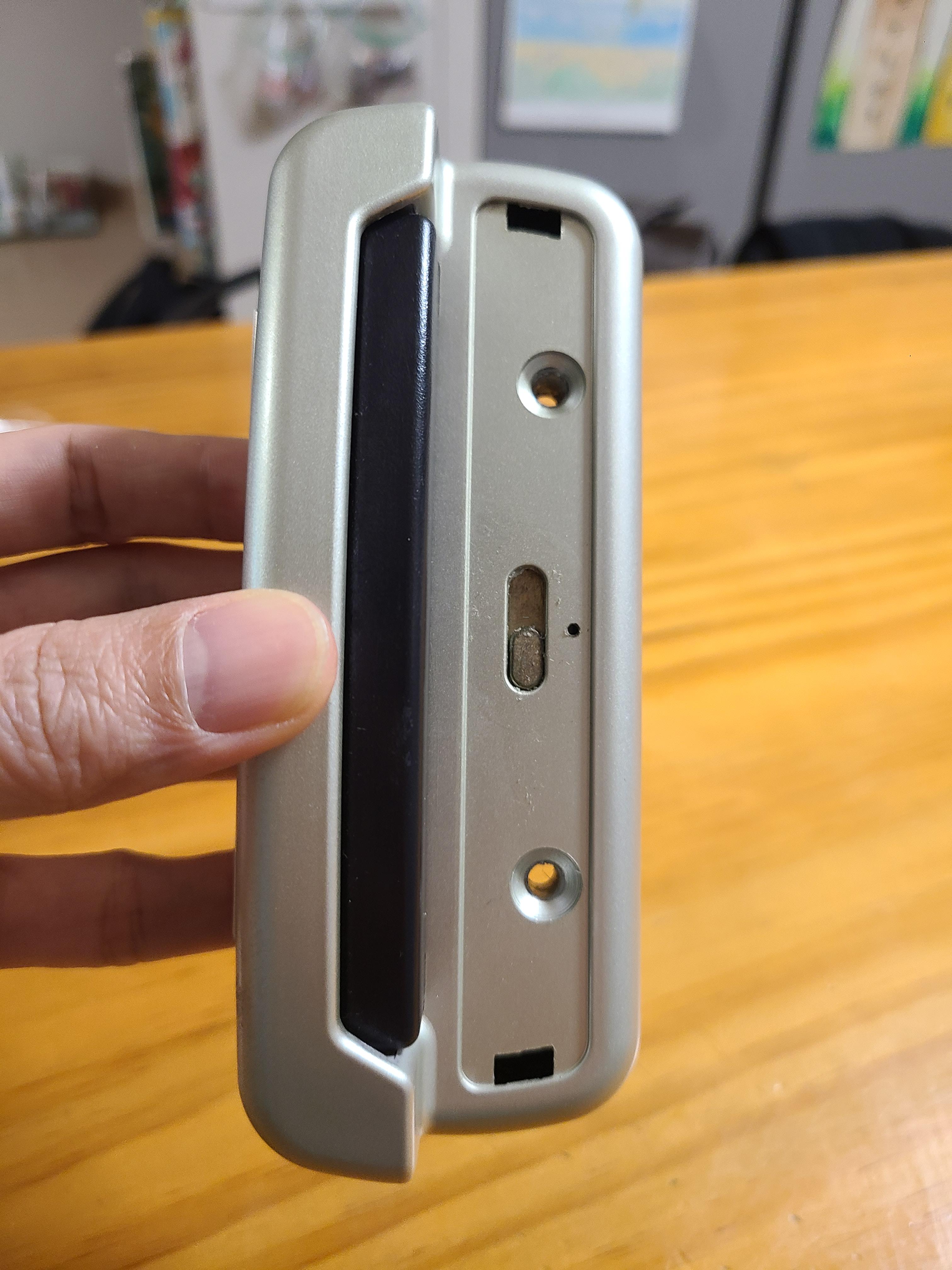- 새 손잡이의 중앙 래치 간격과 상하 고정 핀의 위치가 기존 부품(사진 3)과 동일한지 반드시 확인해야 합니다. 규격이 다르면 설치가 불가능합니다.